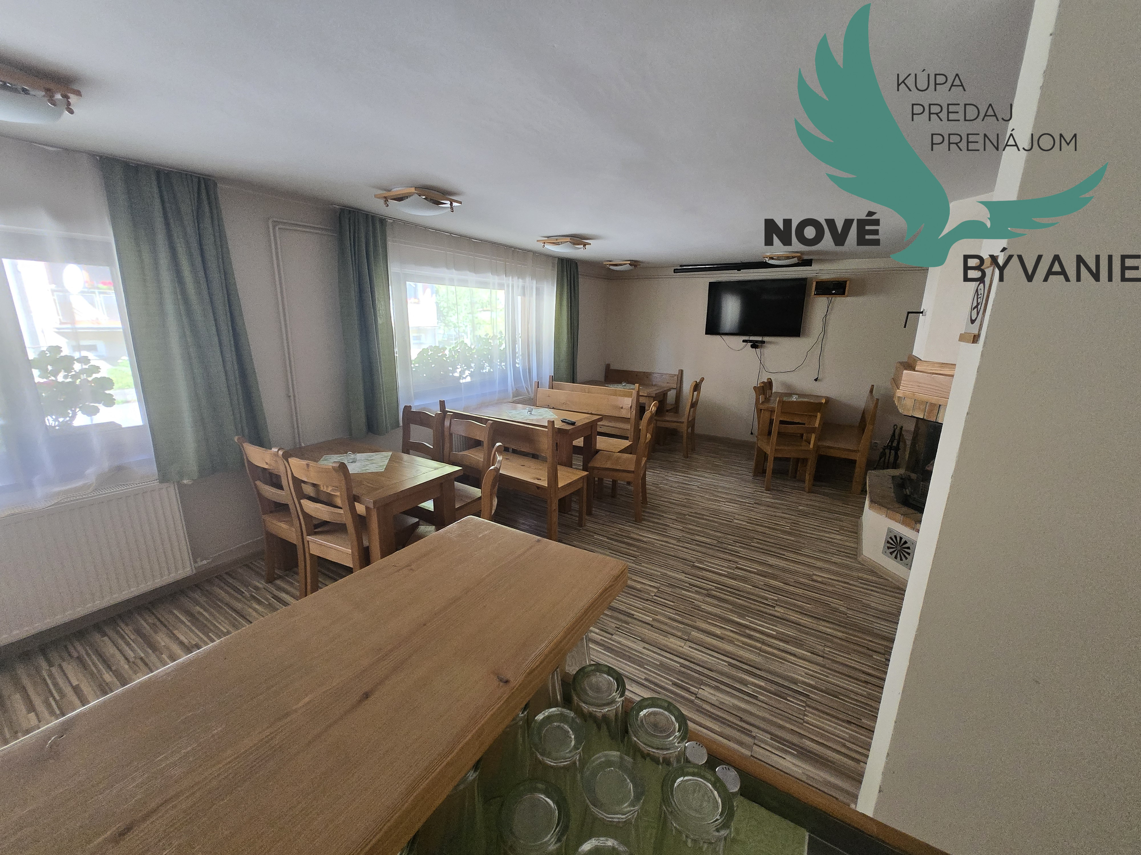PRÍZEMIE (Úžitková plocha 490 m²): Komplexné vybavenie pre plnohodnotnú prevádzku. Nájdete tu recepciu, veľkú jedáleň/reštauráciu, spoločenskú miestnosť/kaviareň, kompletne vybavenú kuchyňu (vrátane nového plynového sporáka), kanceláriu a skladové priestory. Pre oddych je tu wellness s vírivkou a fínskou saunou a fitnesscentrum (so šatňami a sprchami pre hostí). Nechýba 2x sociálne zariadenie pre personál a bezbariérový 4-lôžkový apartmán so samostatným vstupom.