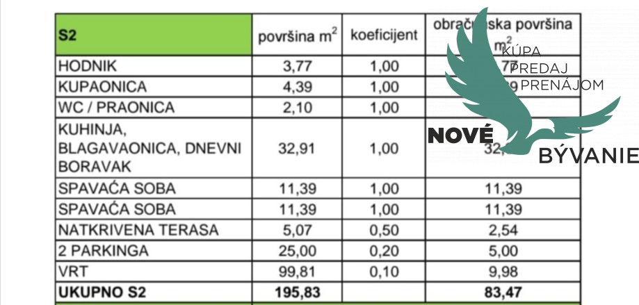 K bytu prislúchajú 2 parkovacie miesta a záhrada o výmere 99,81 m2.