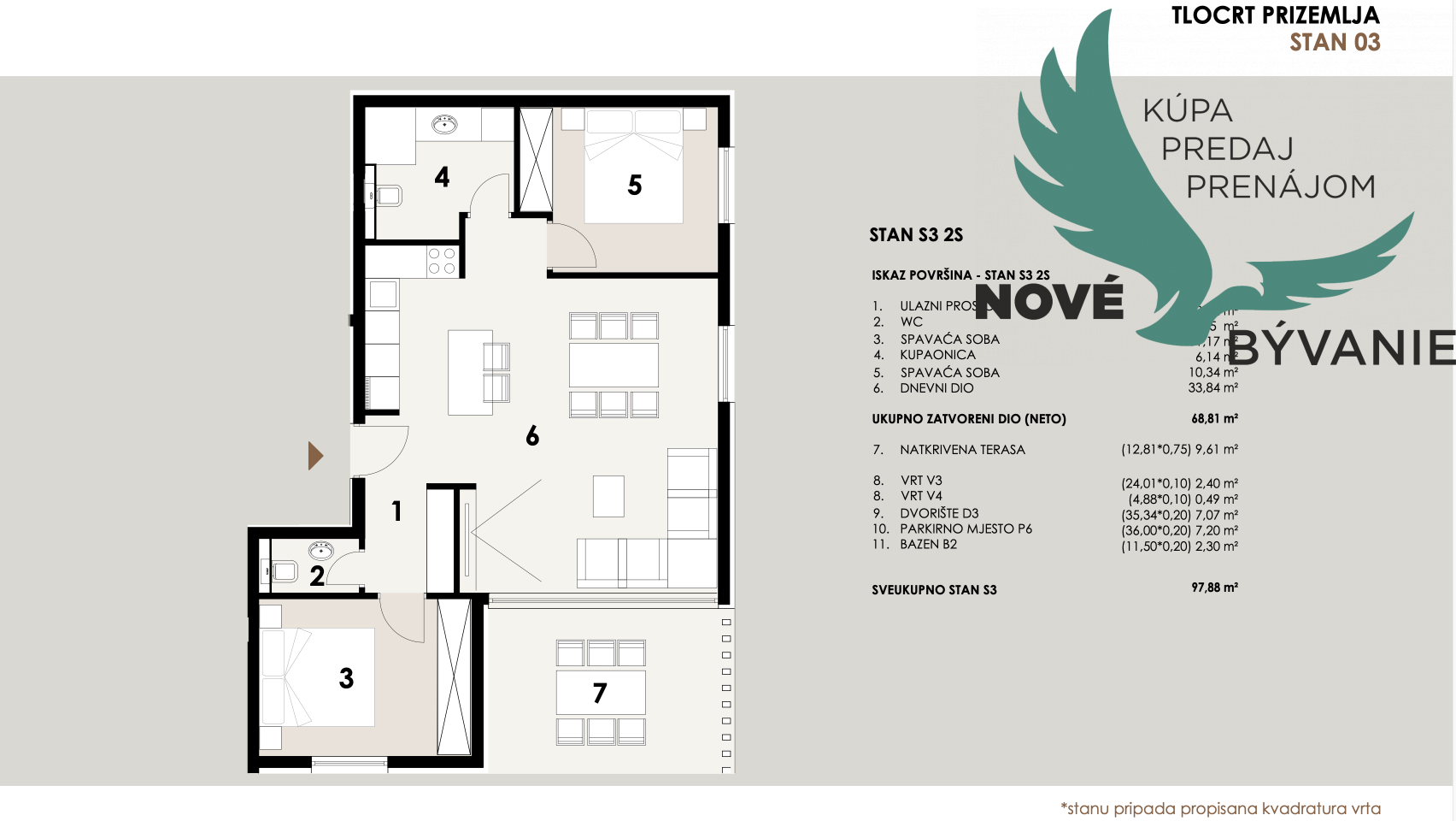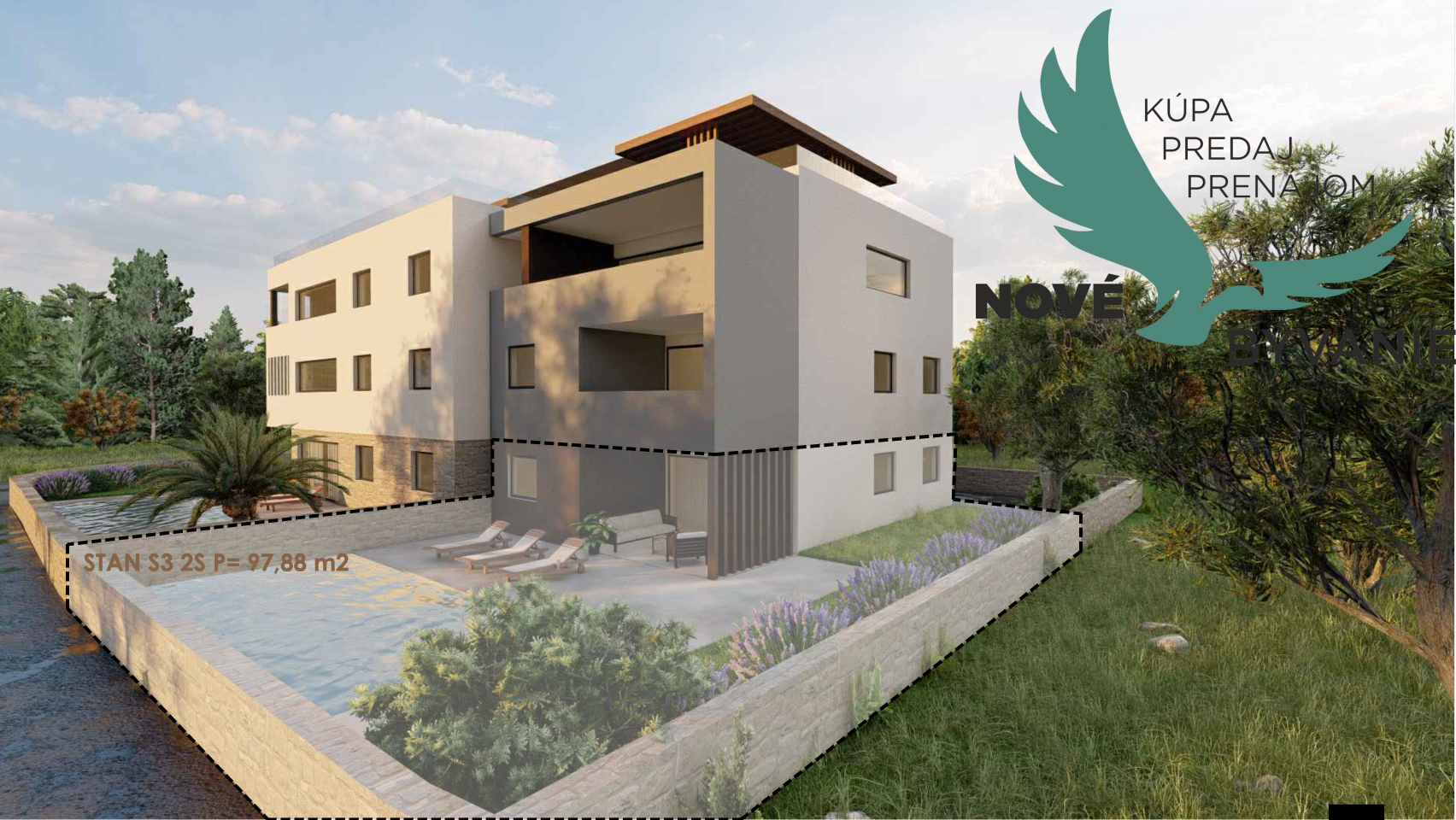 S3 - prízemie, apartmán so záhradou a bazénom 97,87 m² - 425 000,00 €