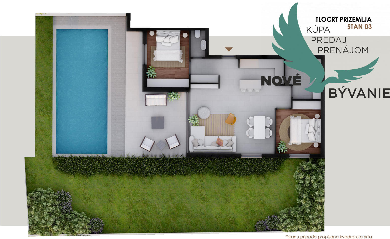 S2 - prízemie, apartmán so záhradou a bazénom 108,55 m² - 530 000,00 €