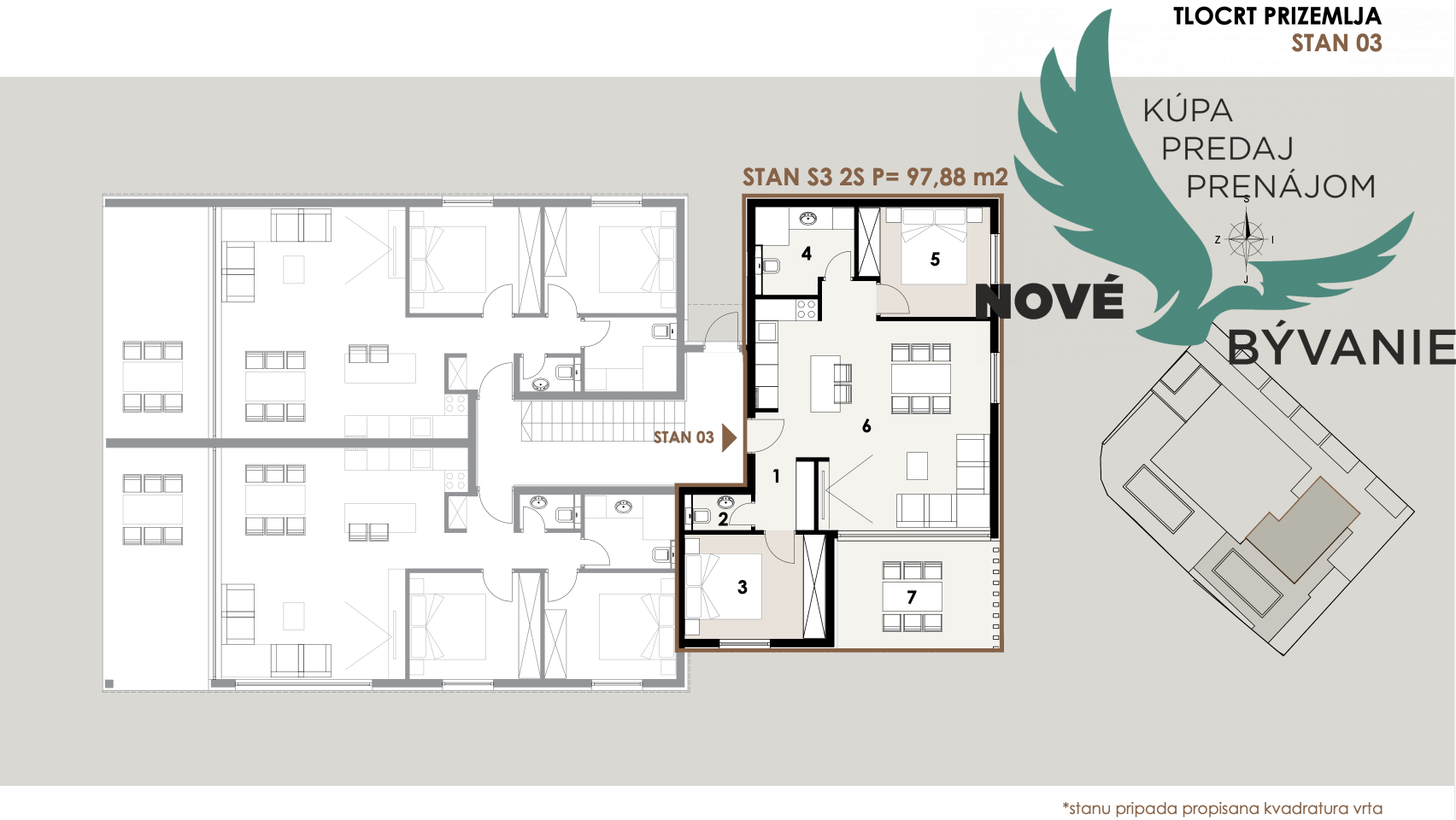 S1 - prízemie, apartmán so záhradou 85,35 m² – 345 000,00 €