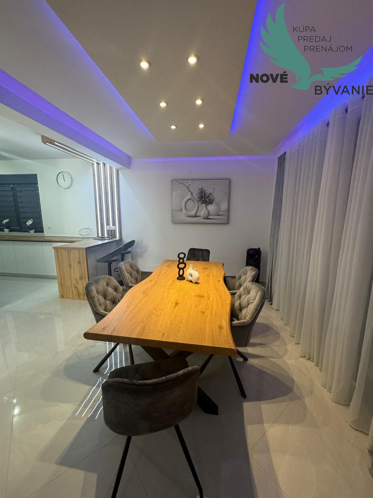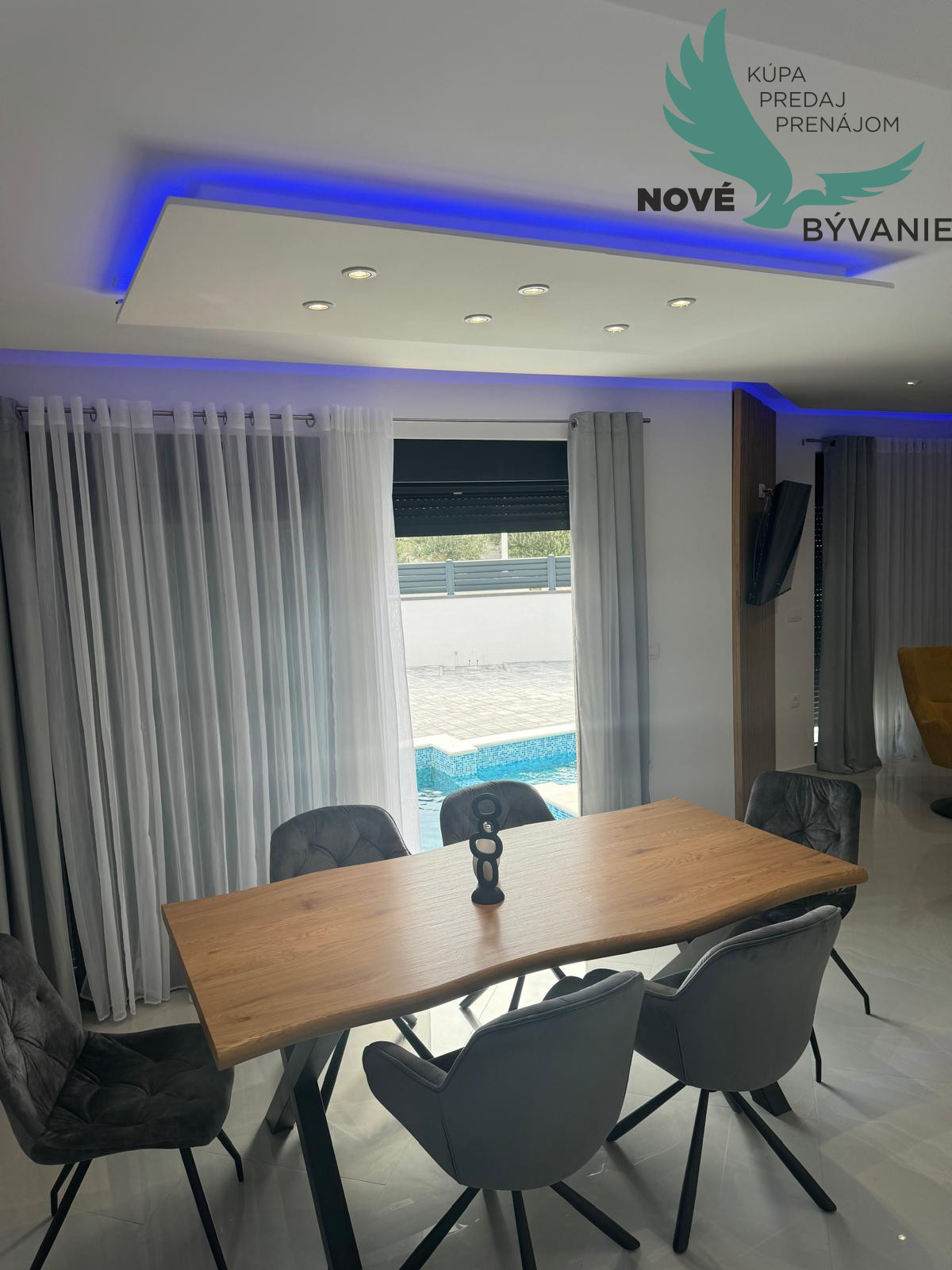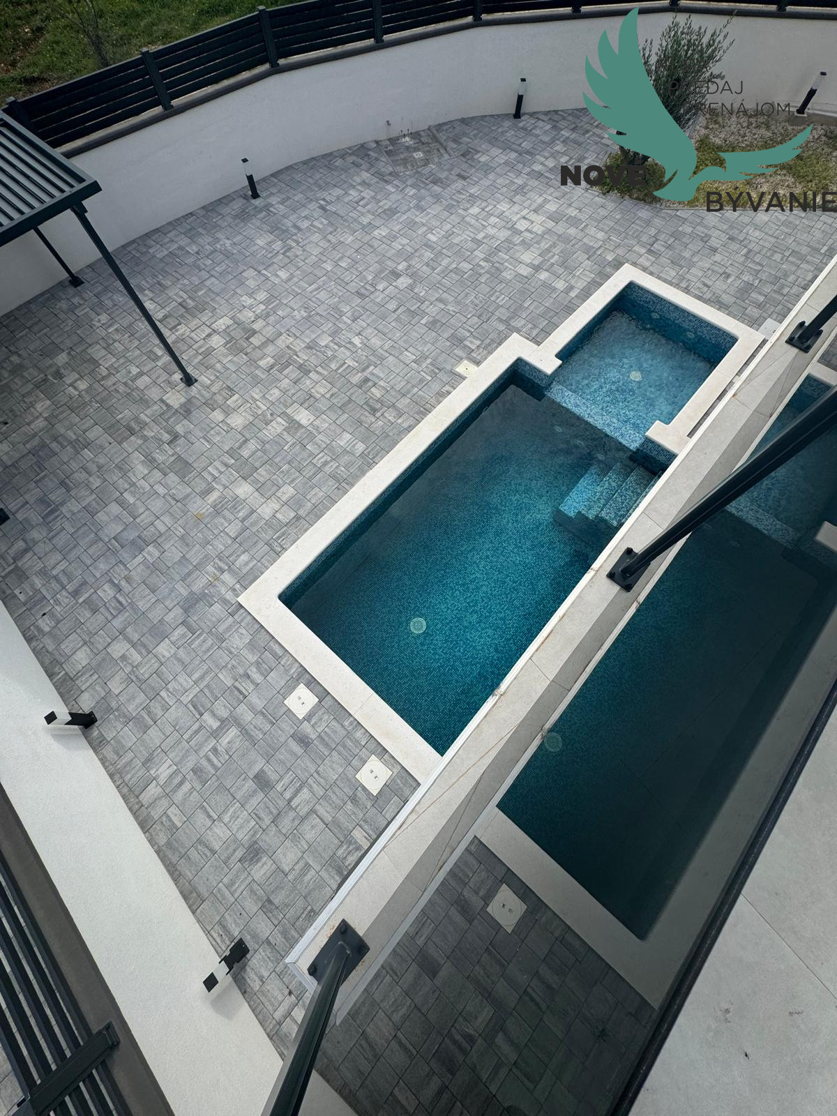 Priestranná kuchyňa spojená s elegantnou obývacou izbou a jedálňou, s priamym východom na terasu. Dominantou exteriéru je priestranný bazén, ktorý zabezpečí dokonalé osvieženie a súkromie. Samostatné WC. Praktická práčovňa so šatníkom.