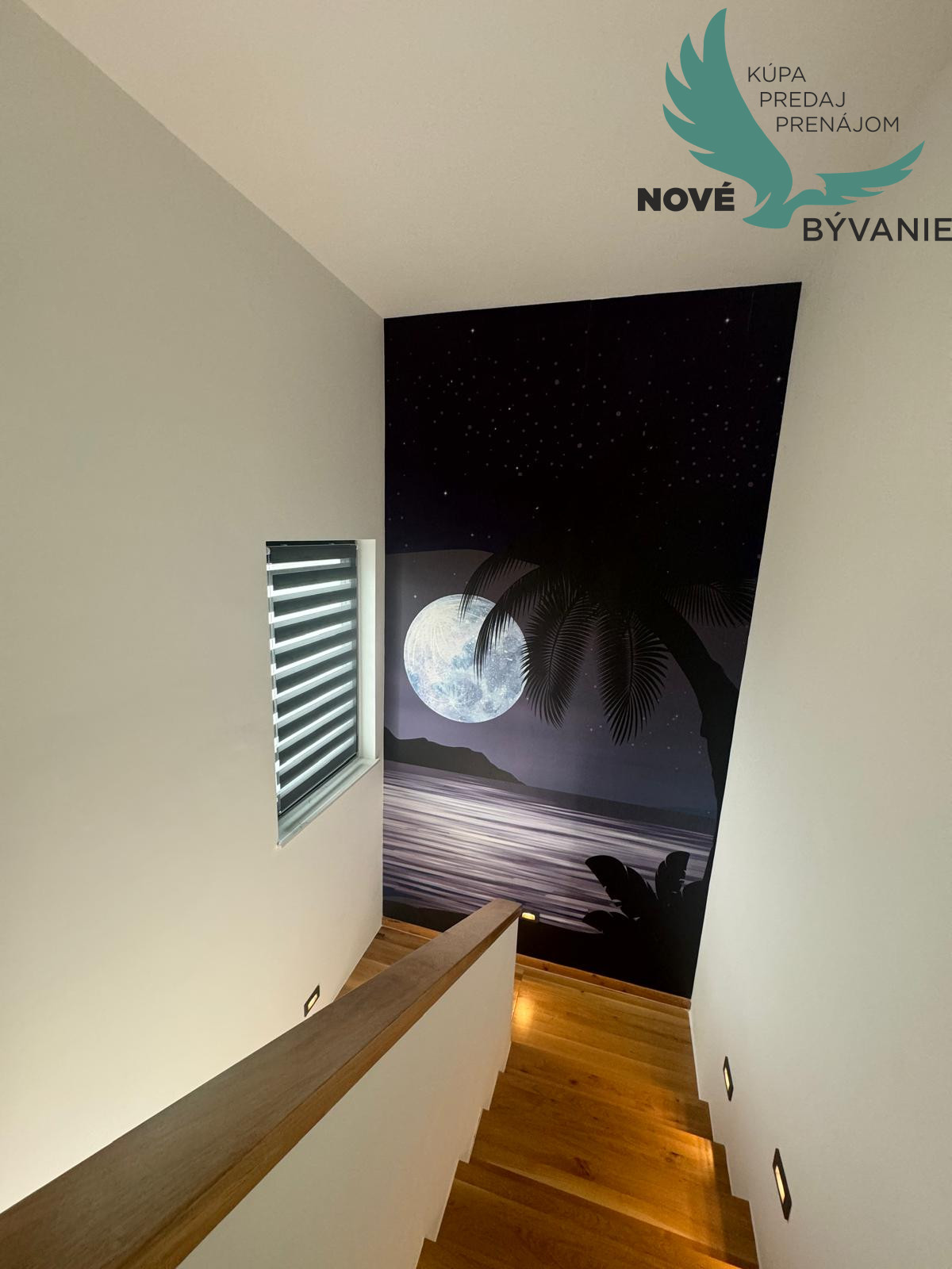 Na poschodie vedie moderné vnútorné schodisko. Nachádzajú sa tu 3 komfortné spálne, pričom každá má vlastnú, štýlovú kúpeľňu (3x kúpeľňa spolu!). Chodba a balkón s relaxačným výhľadom na bazén a okolie.