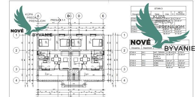 Ku každému prislúcha terasa prislúcha a úložná miestnosť ktorá nieje započítaná v rozlohe bytu.