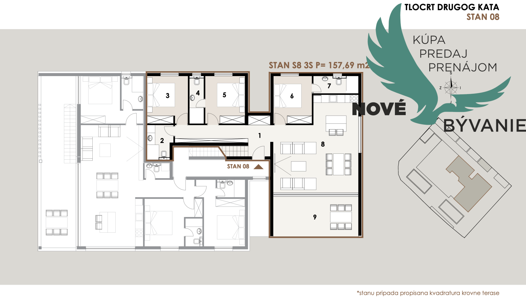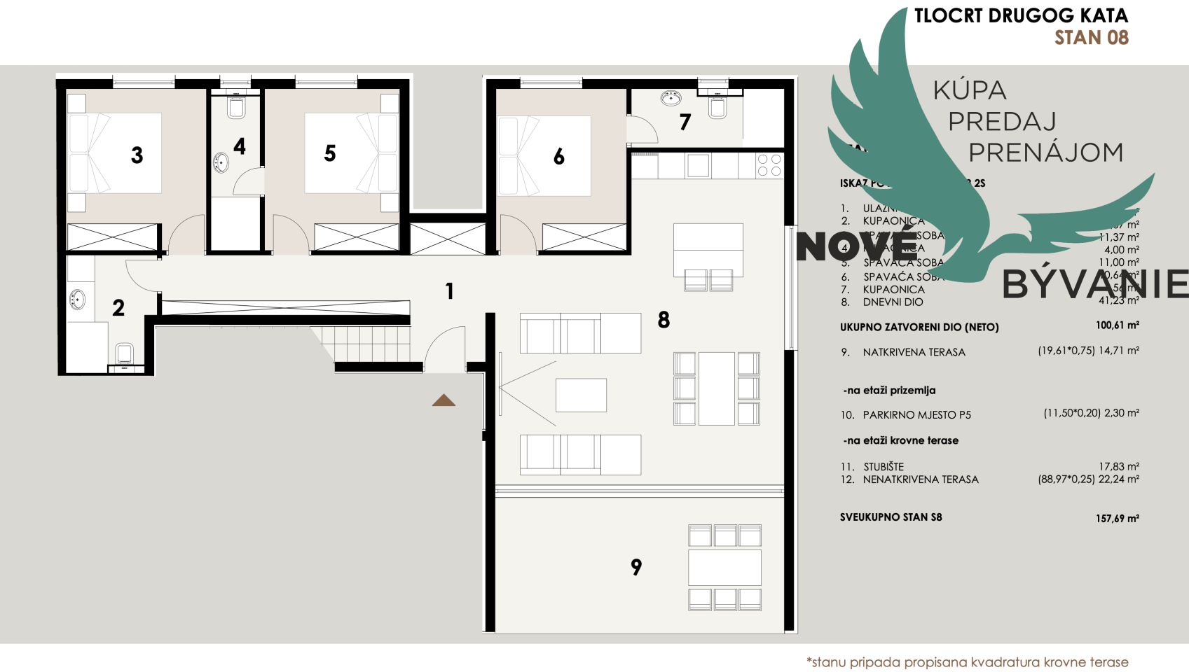 S8 - 2. poschodie, byt so strešnou terasou 157,69 m² – 685 000,00 €