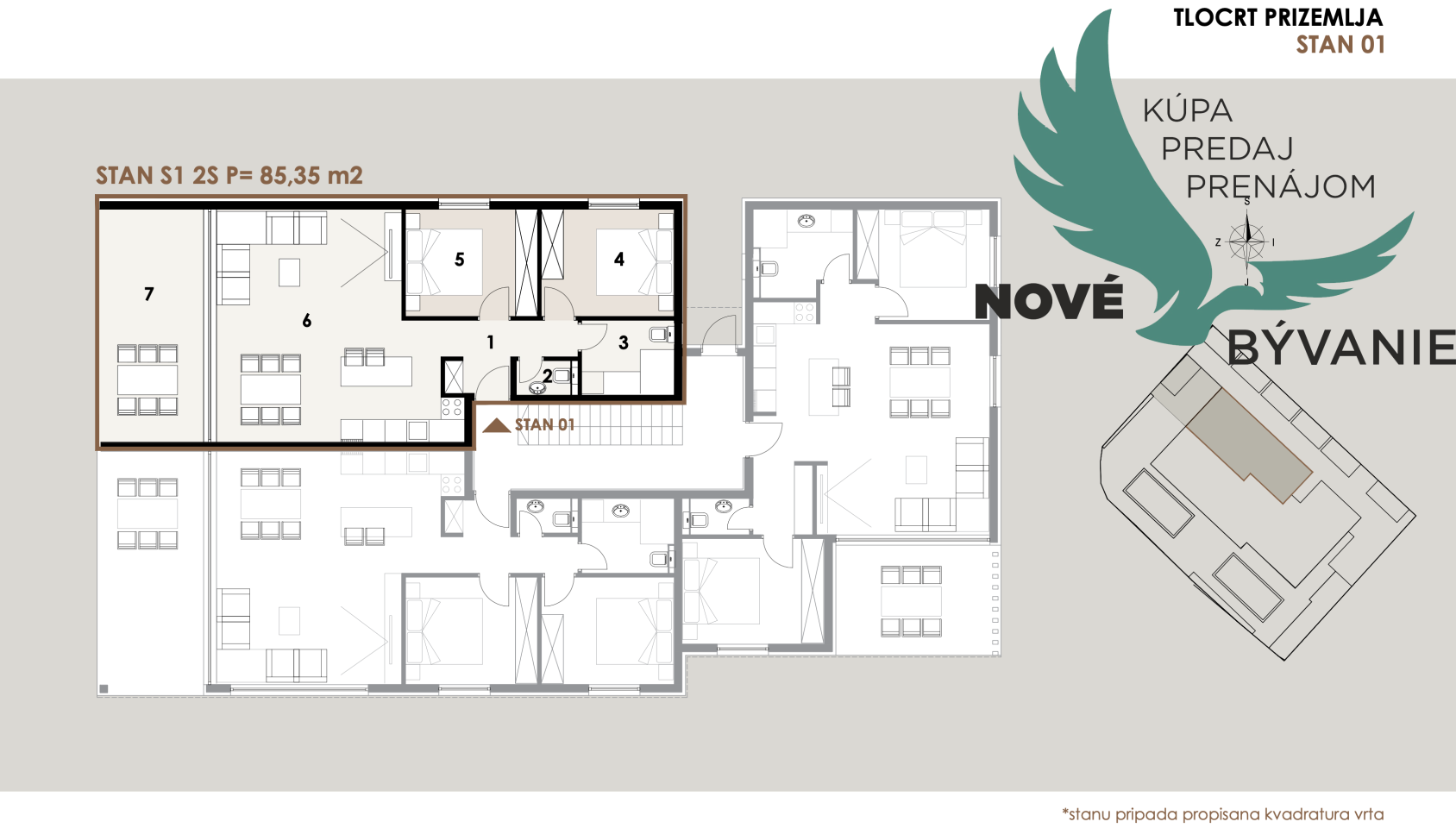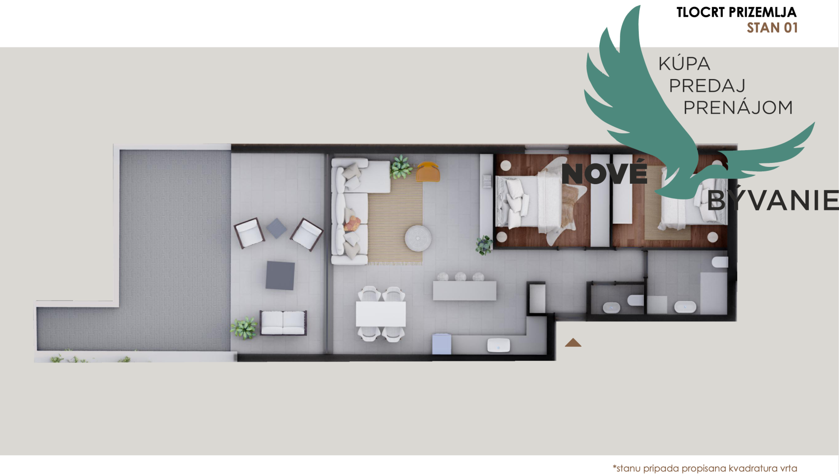 S1 - prízemie, apartmán so záhradou 85,35 m² – 345 000,00 €