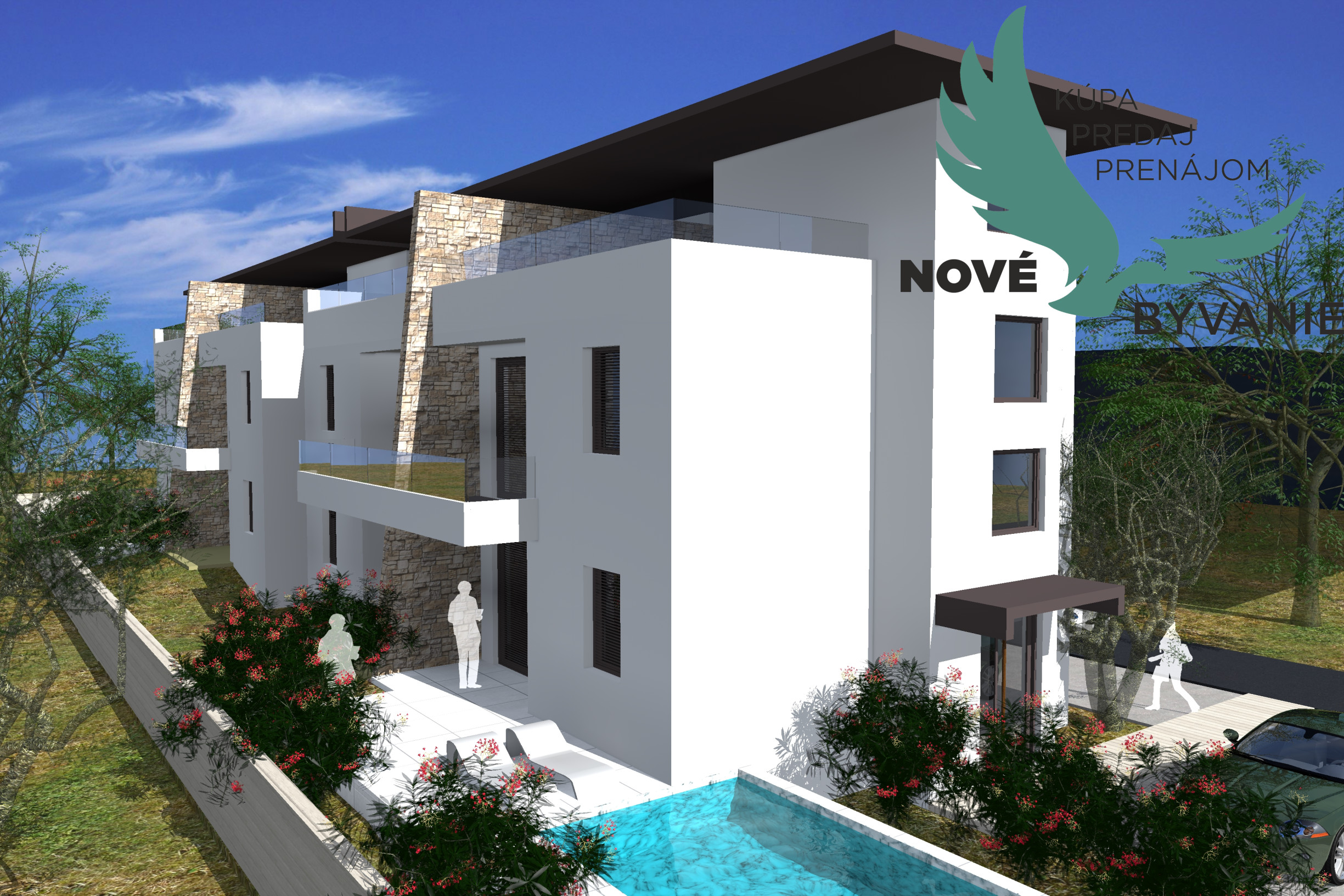 Novostavba trojpodlažný apartmán so záhradou aj strešnou terasou v Chorvátsku v Privlake