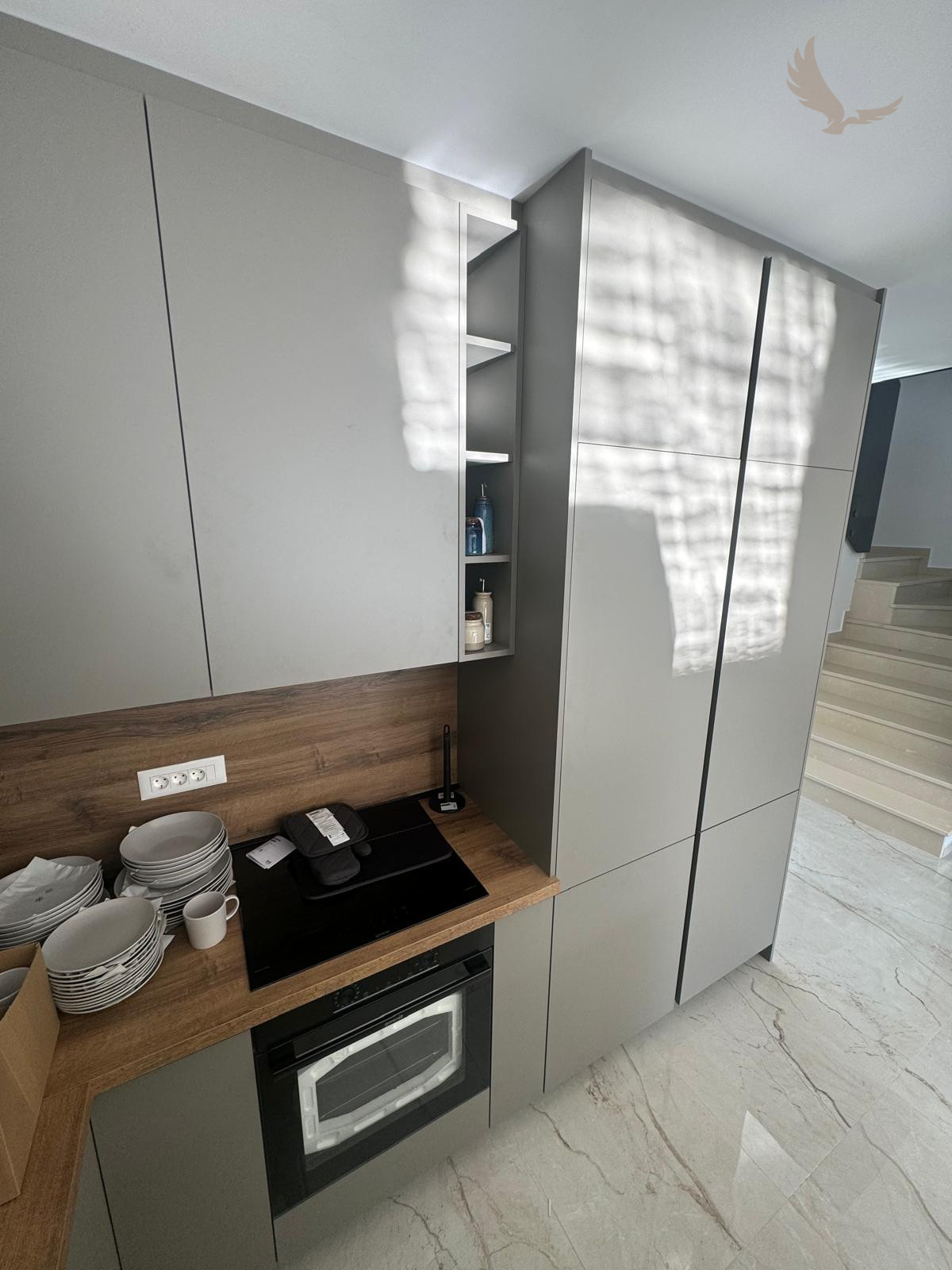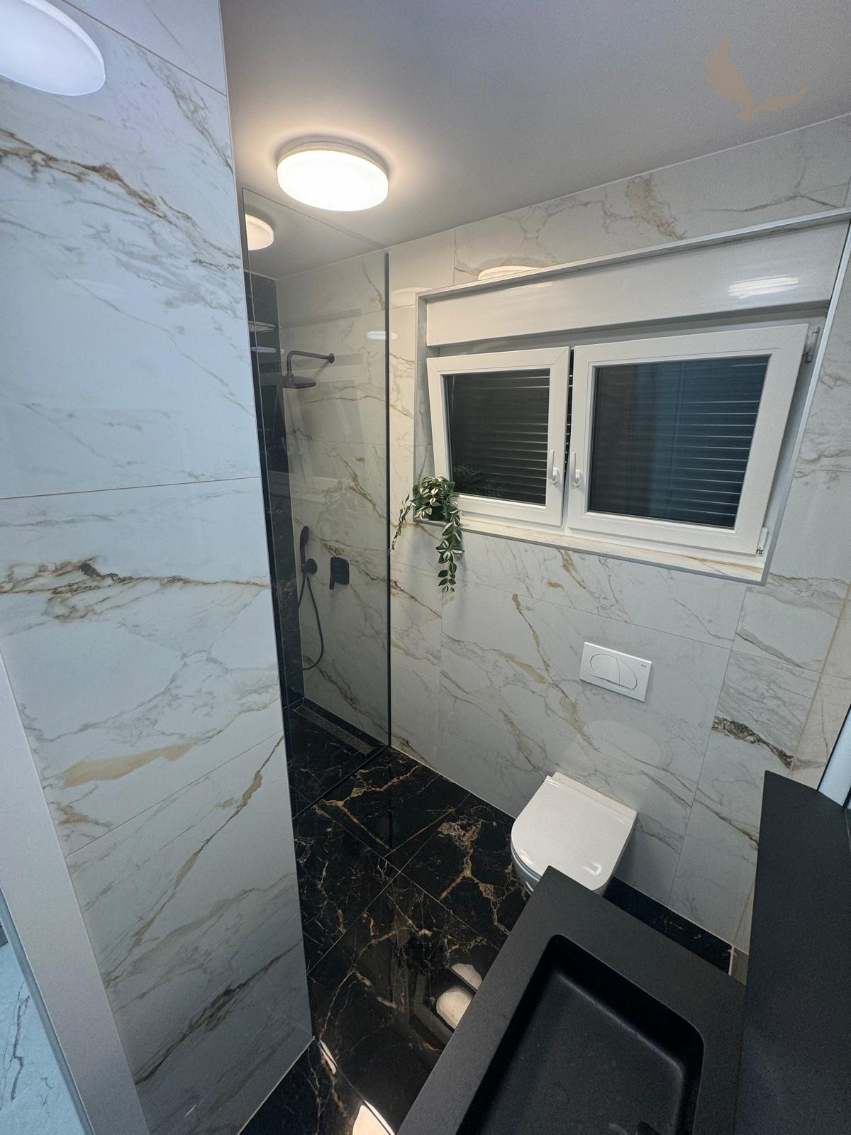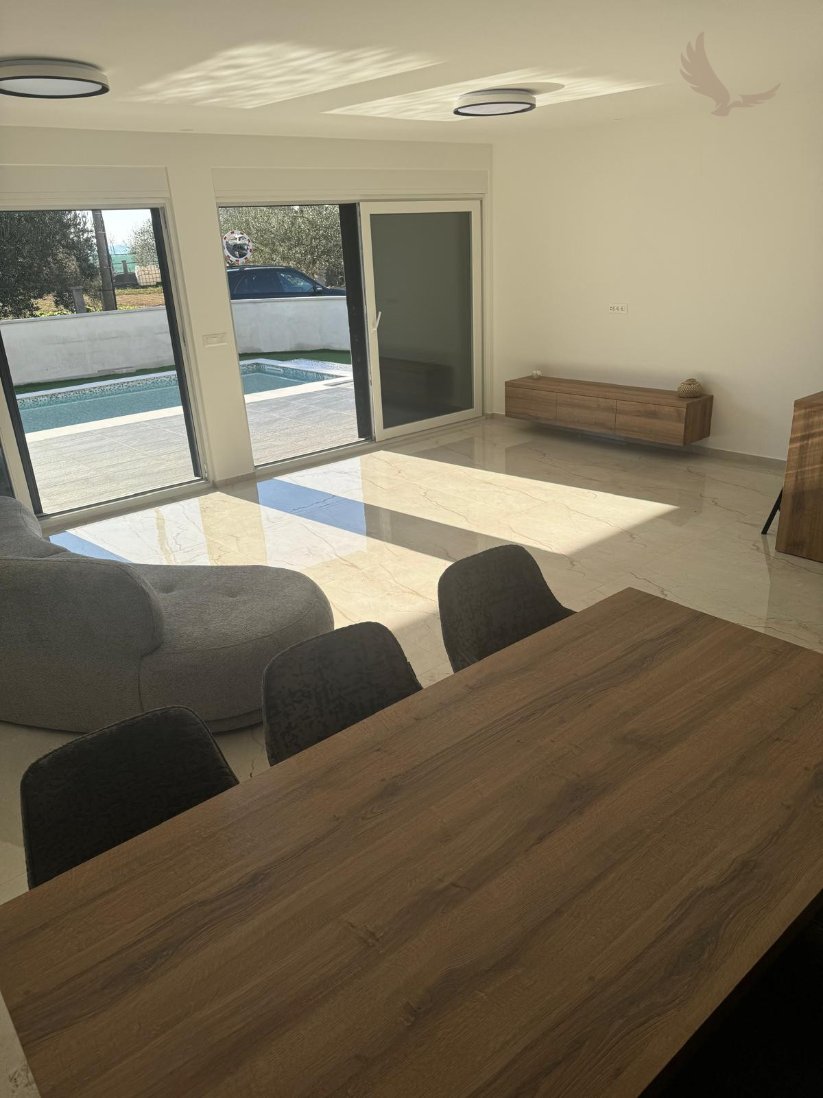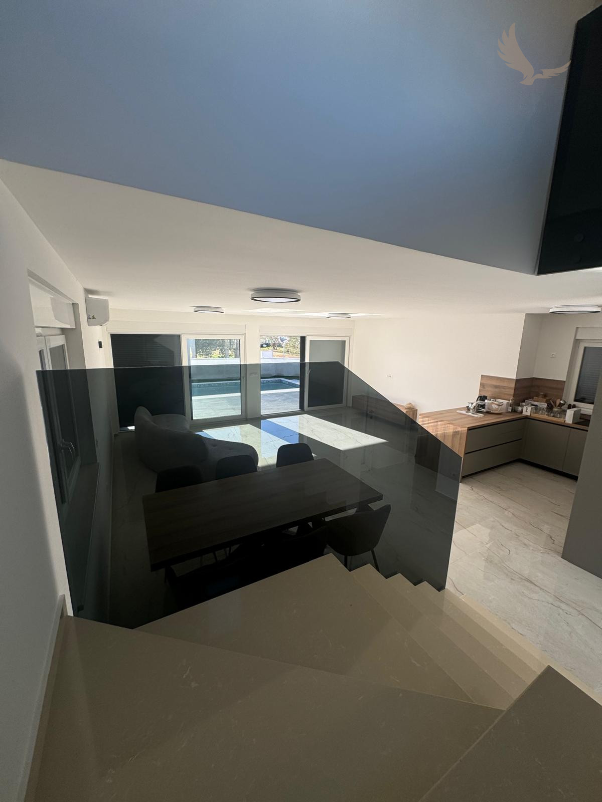 Na prízemí obývacia izba,kúpelňa, kuchyňa s jedálňou s ktorej je východ na terasu kde je bazén. Na poschodí sú tri spálne, dve kúpeľne a priestranná terasa s výhľadom na more. Ku domu je aj priestranná záhrada. V celom dome je podlahové kurenie. Predáva sa kompletne vkusne zariadený aj so spotrebičmi.