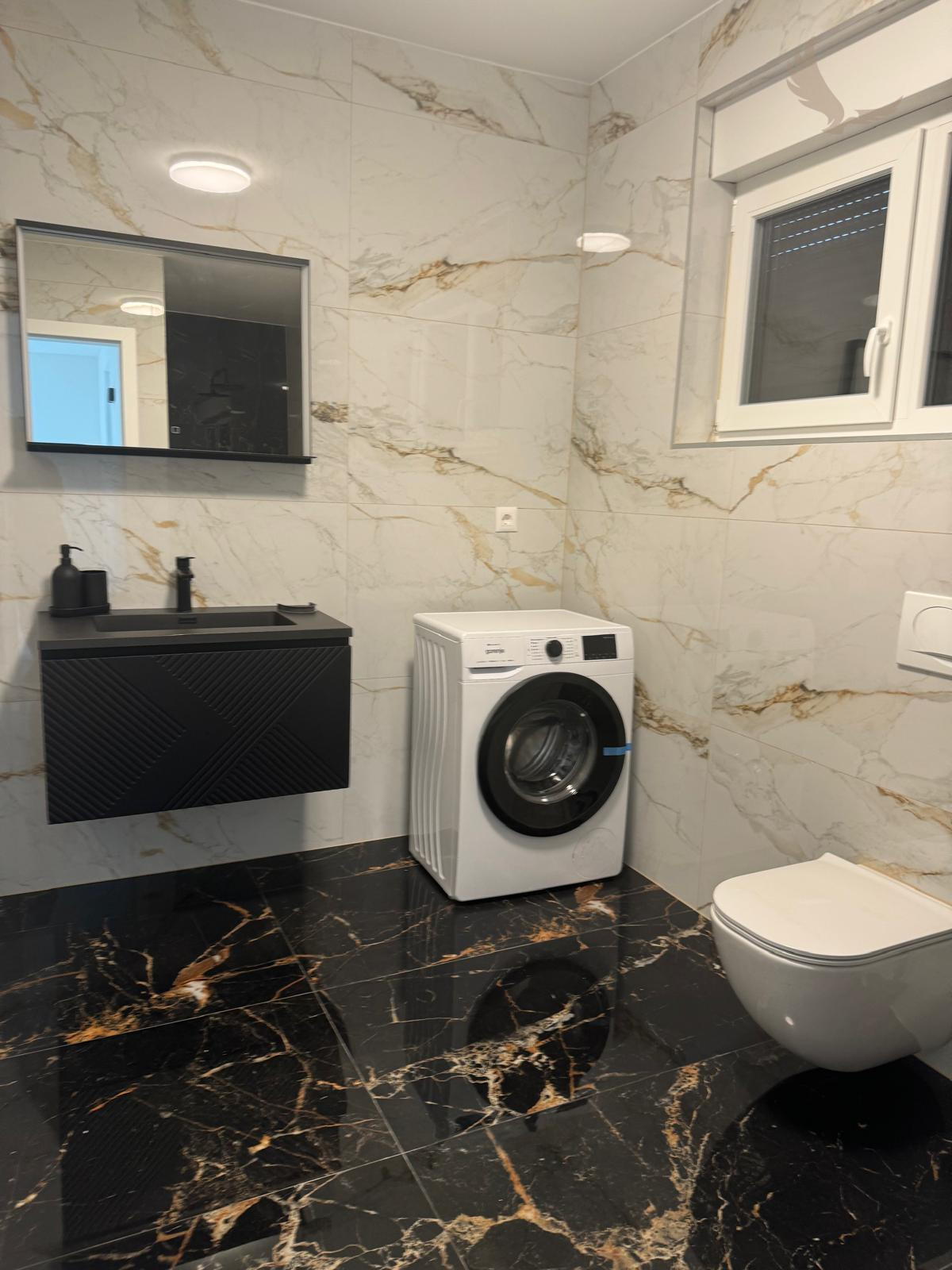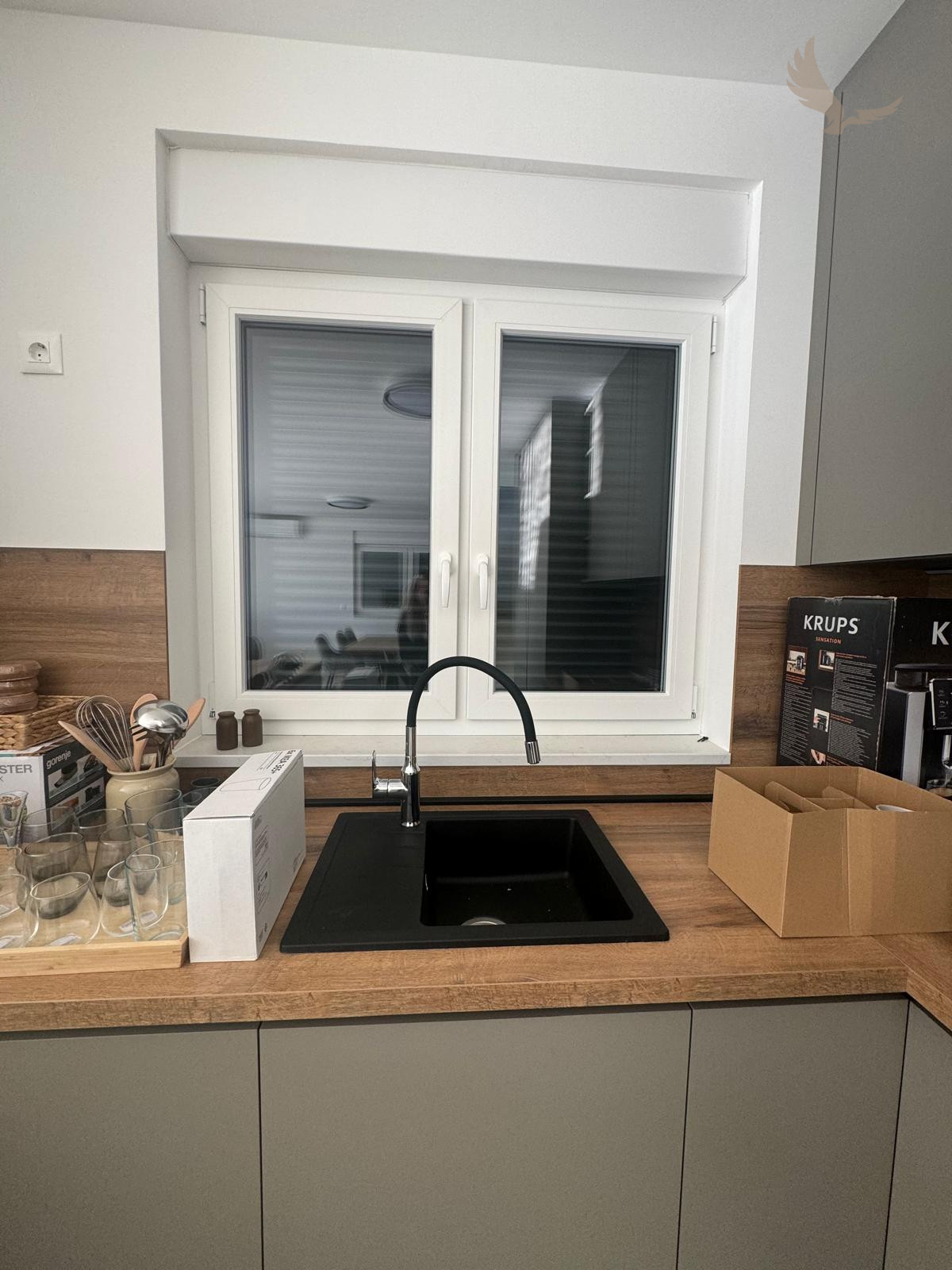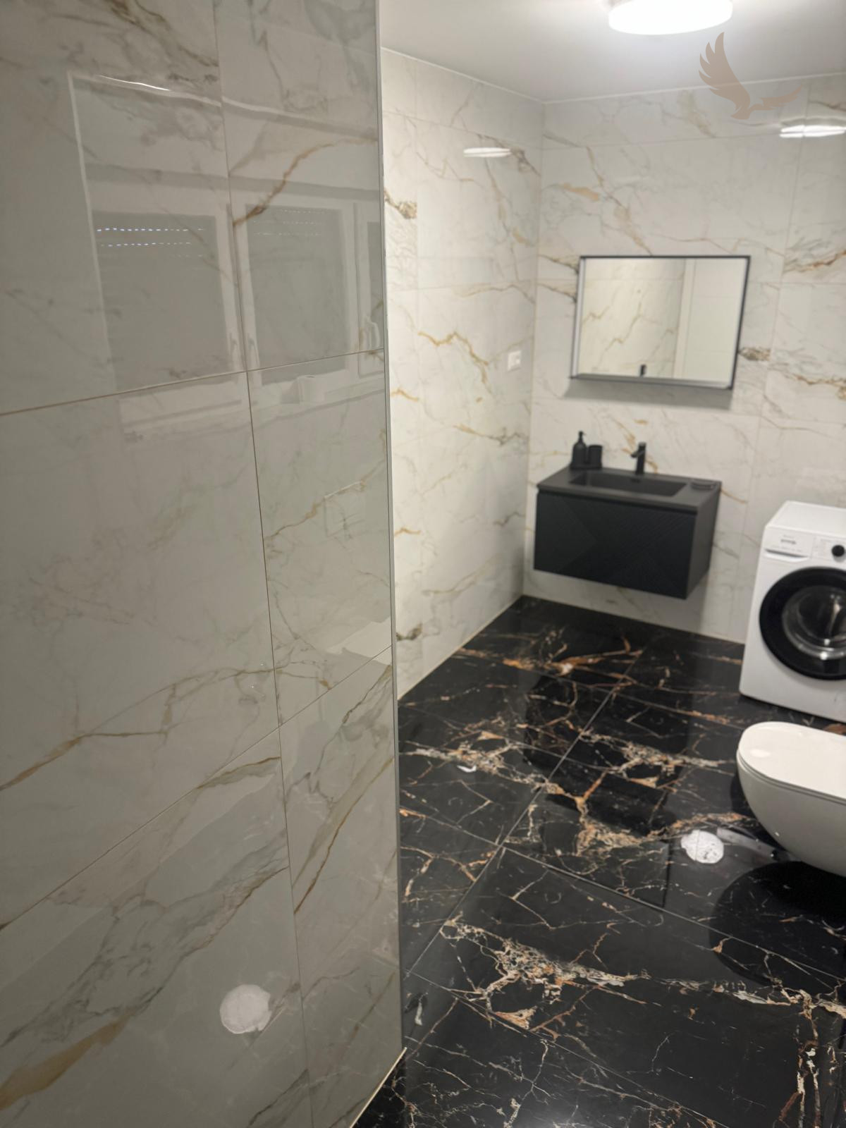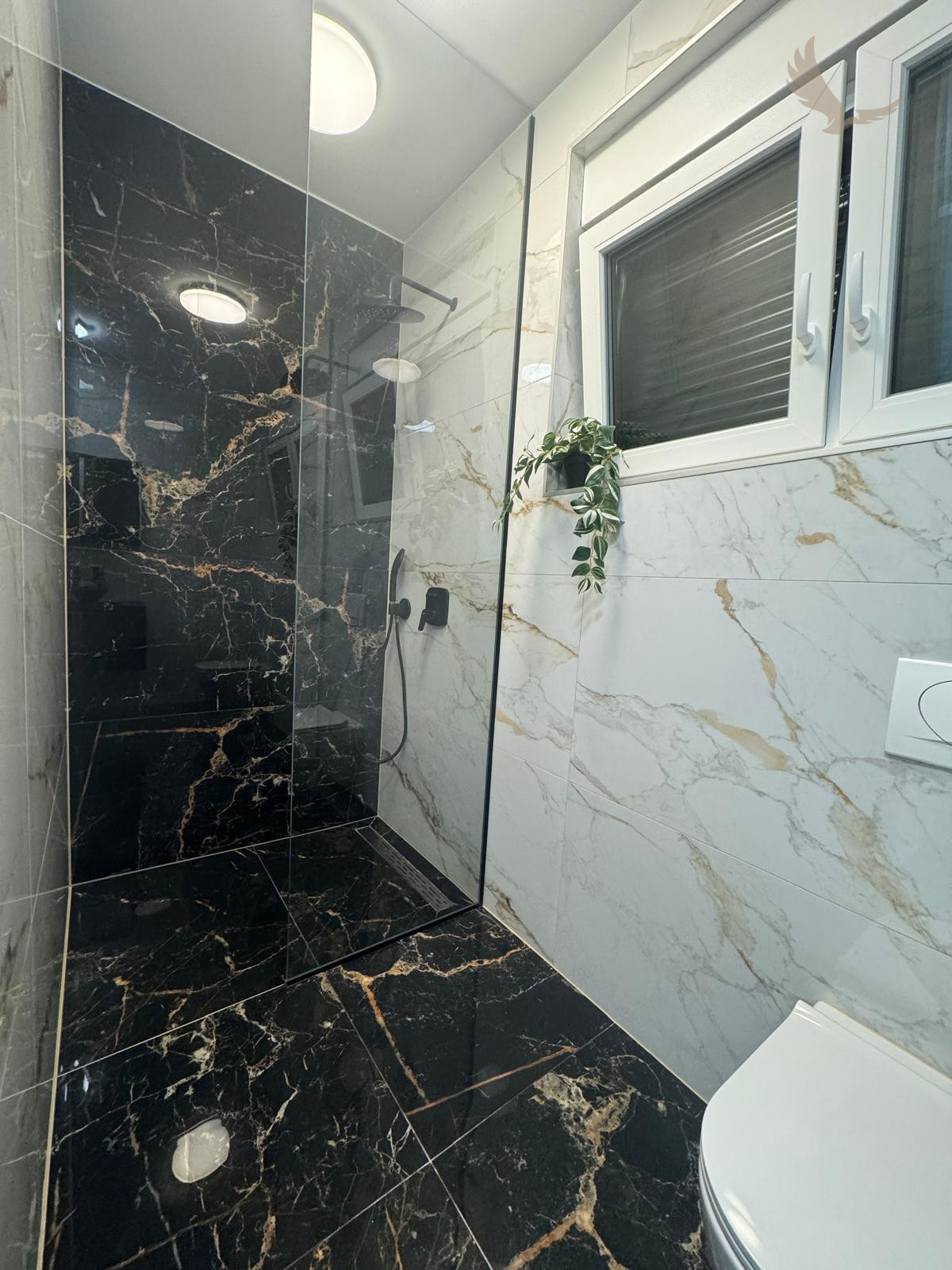 Na prízemí obývacia izba,kúpelňa, kuchyňa s jedálňou s ktorej je východ na terasu kde je bazén. Na poschodí sú tri spálne, dve kúpeľne a priestranná terasa s výhľadom na more. Ku domu je aj priestranná záhrada. V celom dome je podlahové kurenie. Predáva sa kompletne vkusne zariadený aj so spotrebičmi.