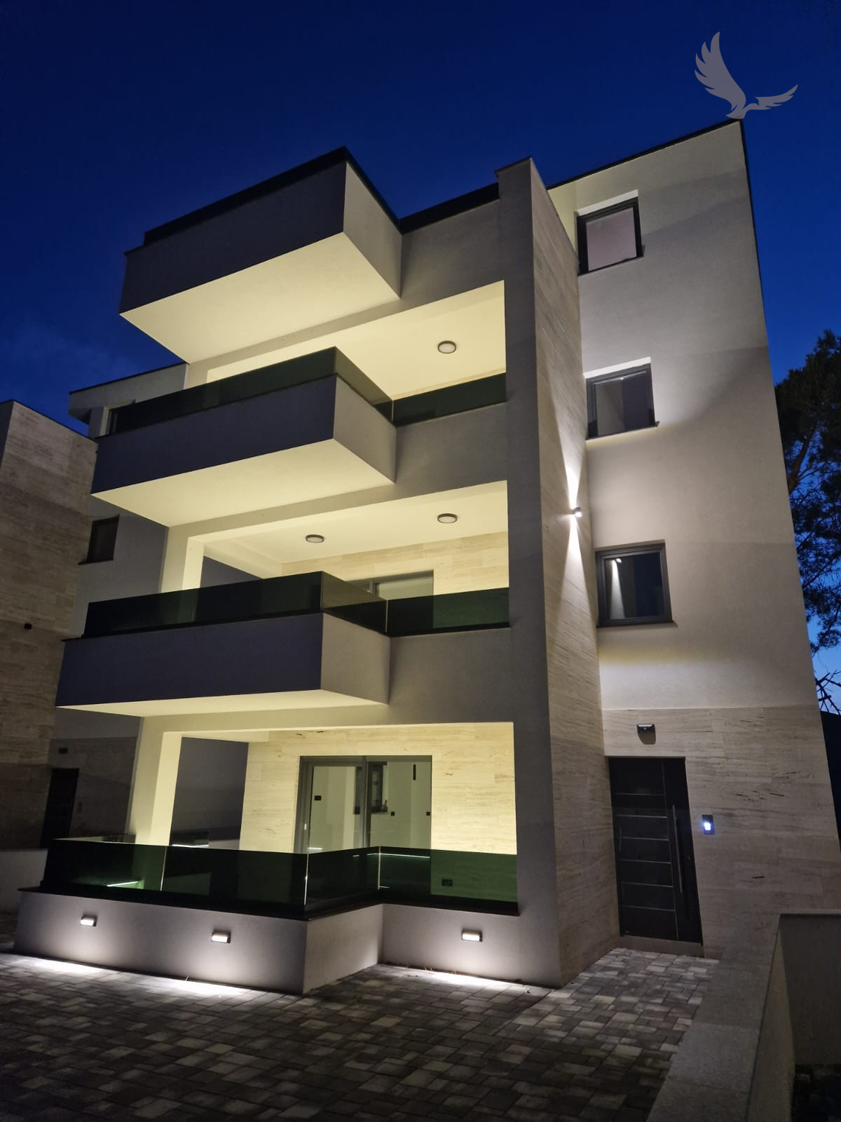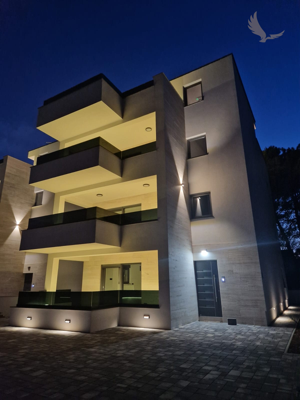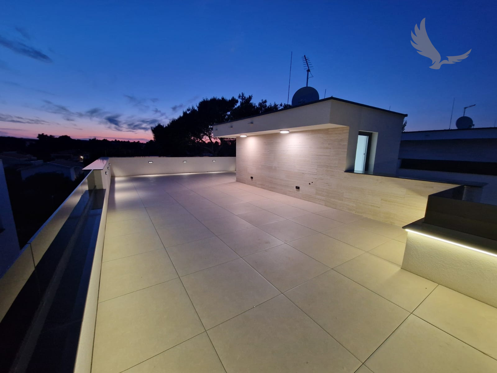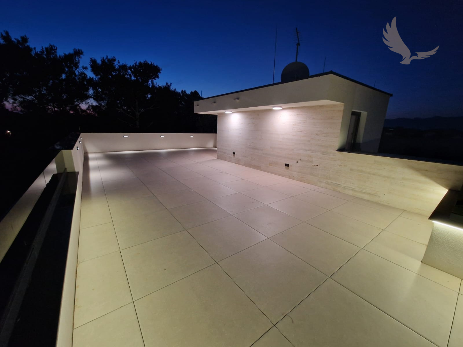 LED ambientné osvetlenie všetkých terás (LED pásy pod kamennými krytmi)