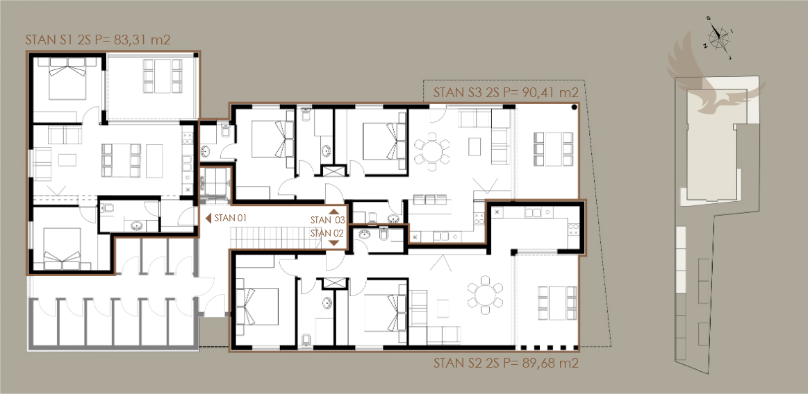 S3-90,41 m², dve spálne, CENA 325 000,00 EUR 1. POSCHODIE