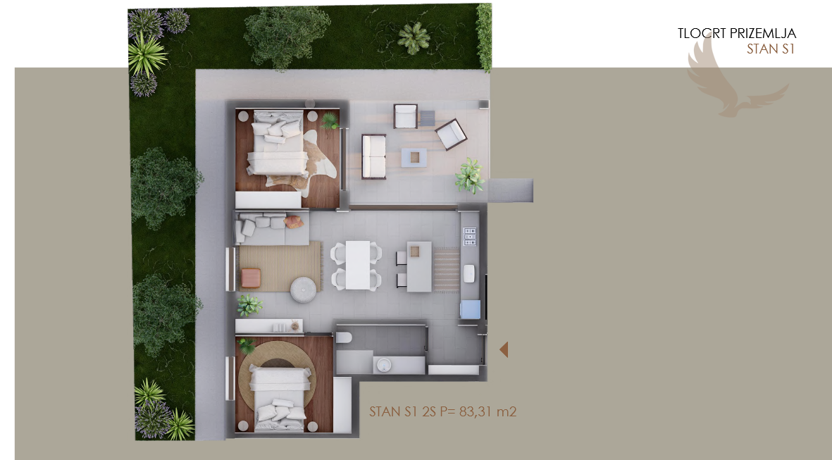 PRÍZEMIE: S1-83,31 m², dve spálne, CENA 299 000,00 EUR