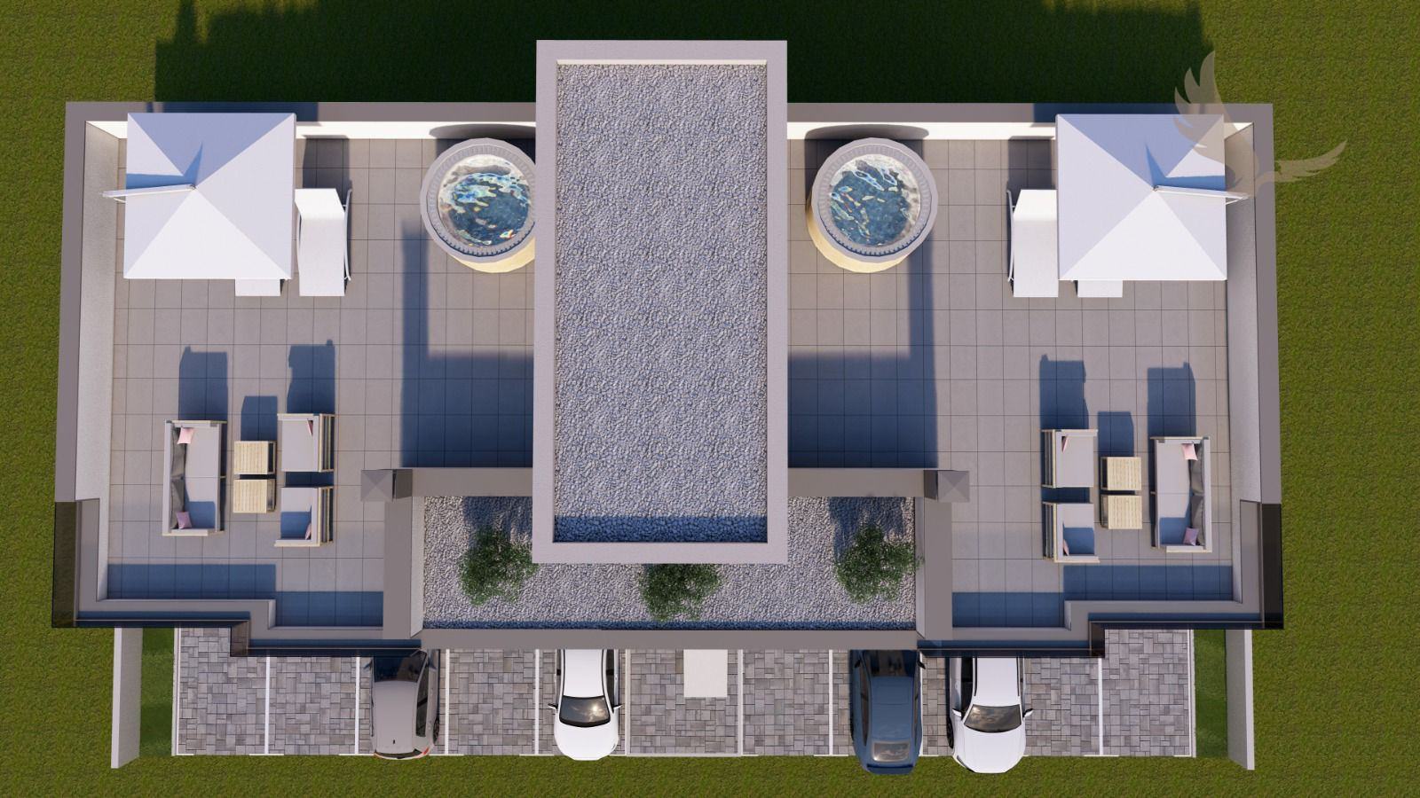 Dispozícia izieb je mimoriadne funkčná, s jasne oddelenou súkromnou a obytnou časťou, zatiaľ čo veľké presklené otvory zabezpečujú dostatok prirodzeného svetla a príjemný pobyt počas celého dňa.