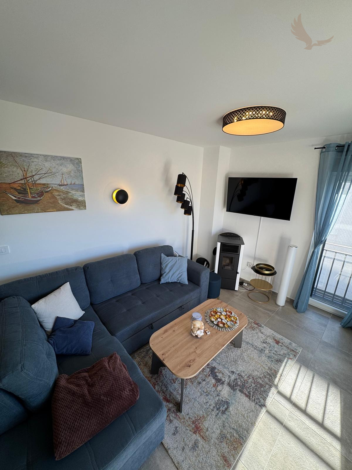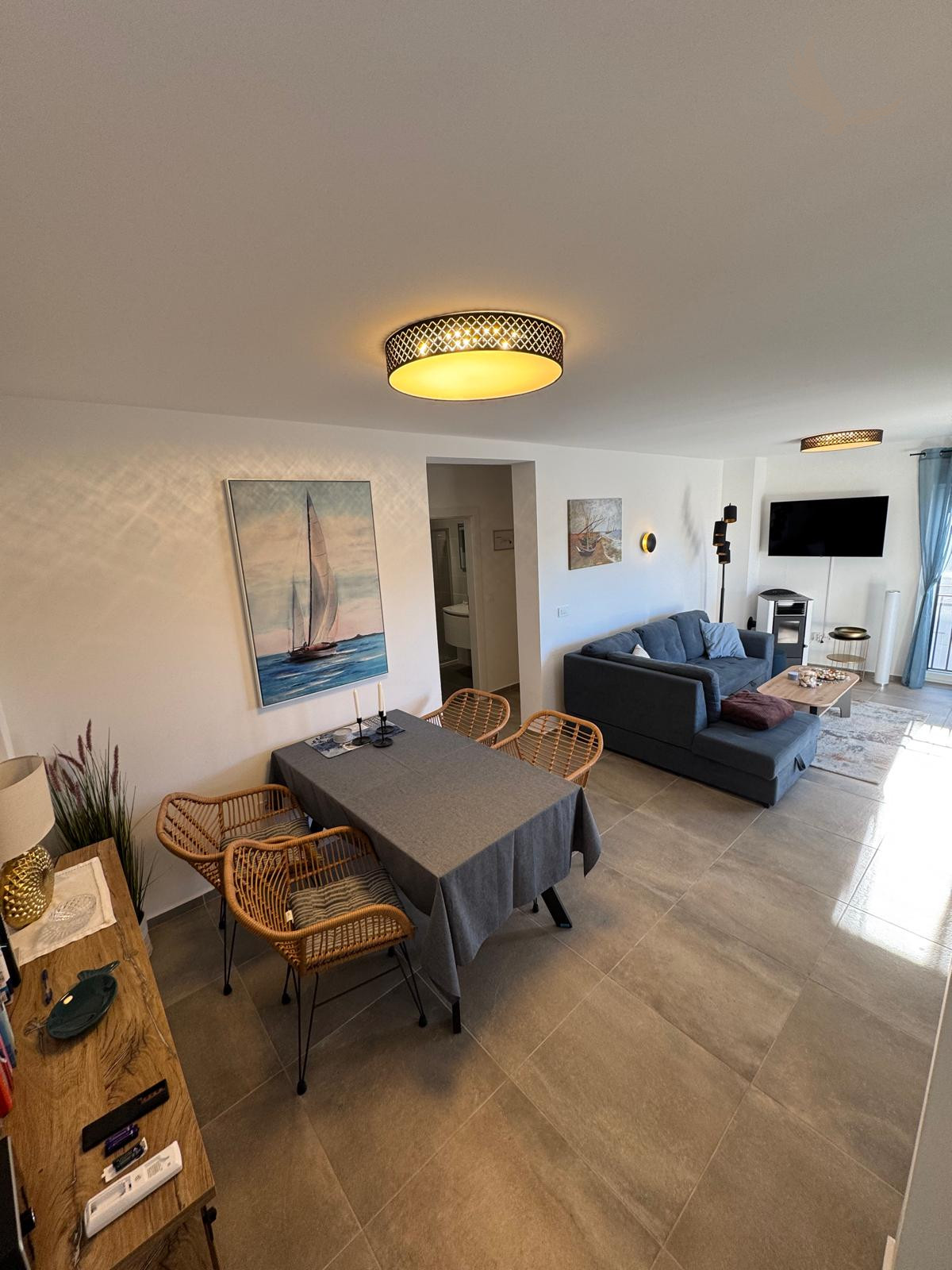 Pozostáva z kuchyne s jedálňou, obývačky s prístupom na terasu s výhľadom na more, dvoch spální a kúpeľne. Ku bytu prislúcha terasa s panoramatickým výhľadom na more a ostrov kde je letná kuchyňa s vybavením.